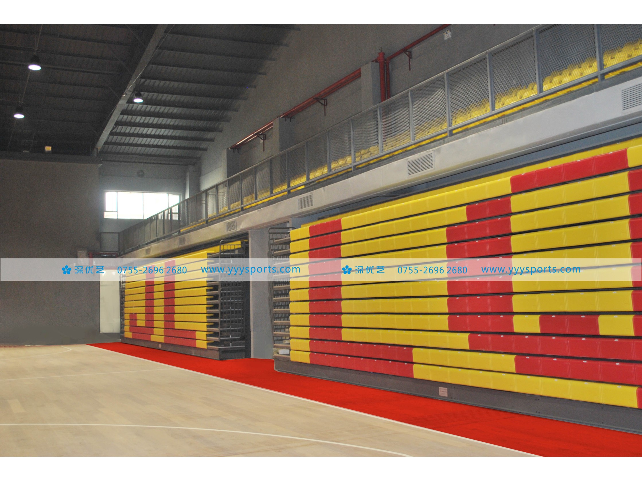 * 活動看臺采用優質鋼材做結構支撐,表面噴粉處理;
